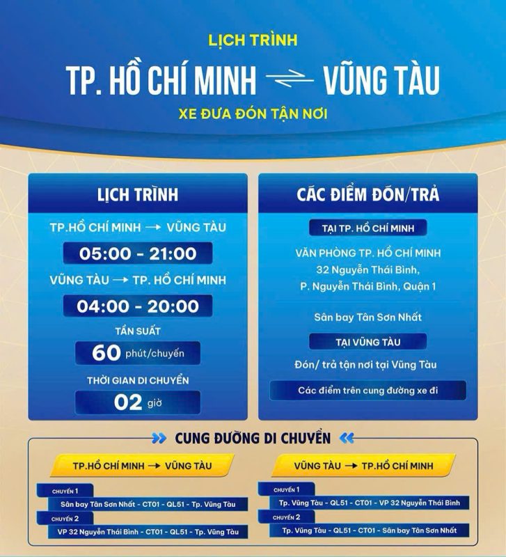 Nếu bạn đang tìm kiếm một trải nghiệm vận chuyển đẳng cấp và thoải mái từ Vũng Tàu đến TP Hồ Chí Minh và ngược lại, Chúng tôi sẽ là sự lựa chọn hoàn hảo cho bạn. Với dịch vụ xe Limousine DCar Vip Lounge sang trọng và tiện ích đỉnh cao